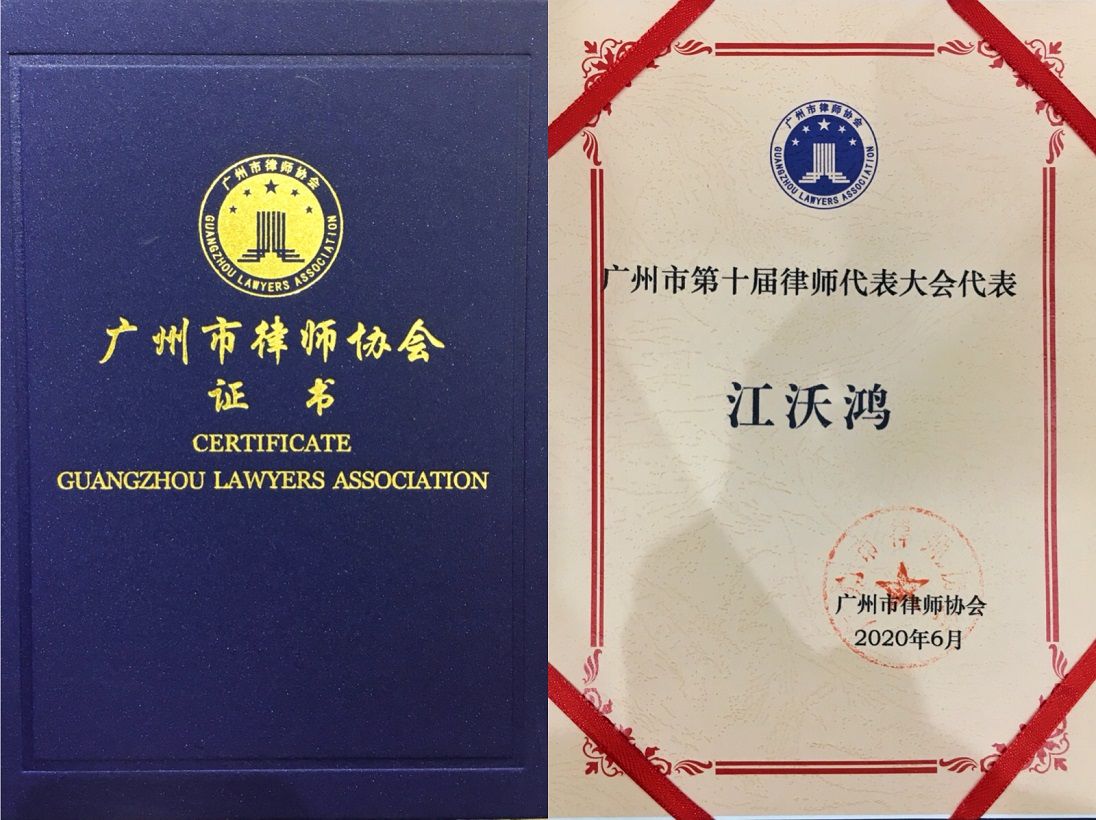 2020年6月28日至30日,广州市第十届律师代表大会在广州白云国际会议中心举行第一次全体会议,我所主任江沃鸿律师当选为广州市第十届律师代表大会代表。