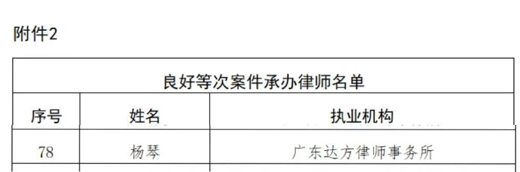 我所杨琴律师承办法律援助案件荣获“良好”等次