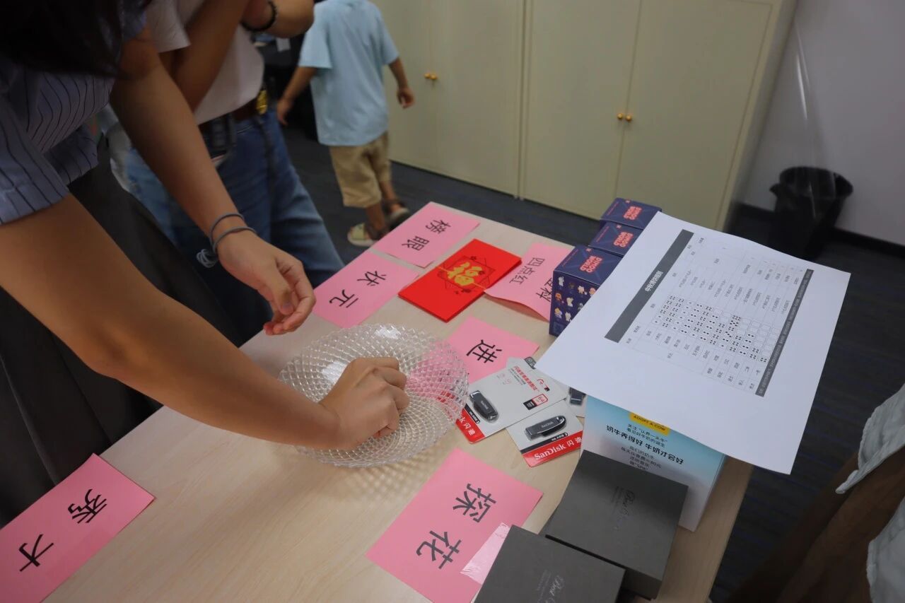 最让人期待的“中秋博饼大会”,堪称全场气氛的“助推器”。清脆的骰子声此起彼伏,每当骰子落定,“一秀”“二举”的欢呼、“状元插金花”的惊叹便接连响起。有人收获了心仪的小零食,有人抱走了实用的日常好物,而最终捧起“状元”惊喜礼的同事,更是在众人的掌声中,将现场氛围推向高潮——手气与运气碰撞的快乐,在此刻格外真切。