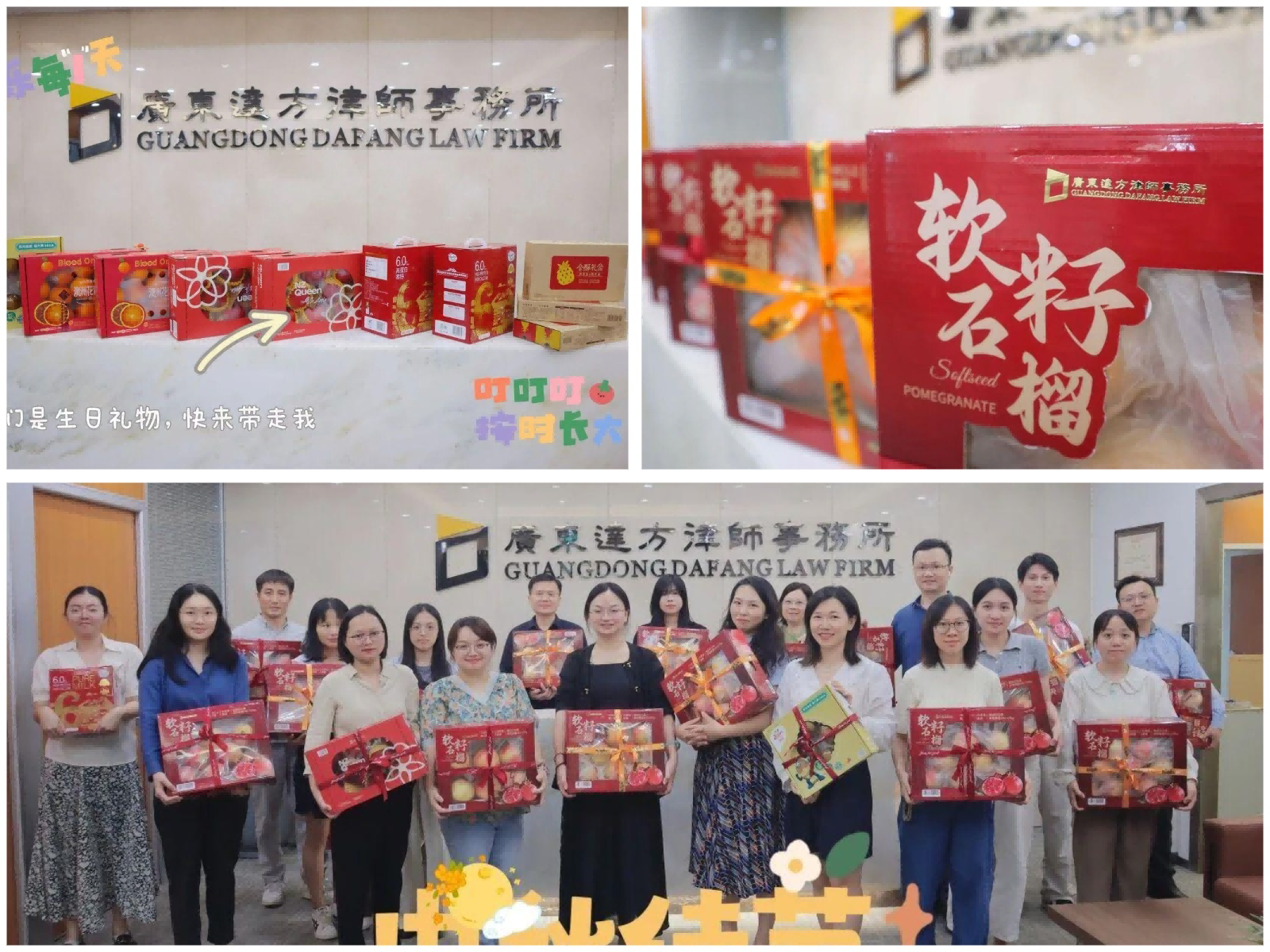 今年,我们给每一位同事精心准备的的中秋礼品:软籽石榴,颗颗硕大饱满的石榴红如玛瑙,将秋日的丰收喜悦与团圆心意紧紧地包裹,那代表着律所对大家的美好祝福。当天的寿星们,更是收获了丰富多样的生日礼,满是诚意。在全体同事合唱的祝寿歌中,寿星们闭眼许愿,温馨的画面让“仪式感”不再是口号,而是触手可及的温暖。